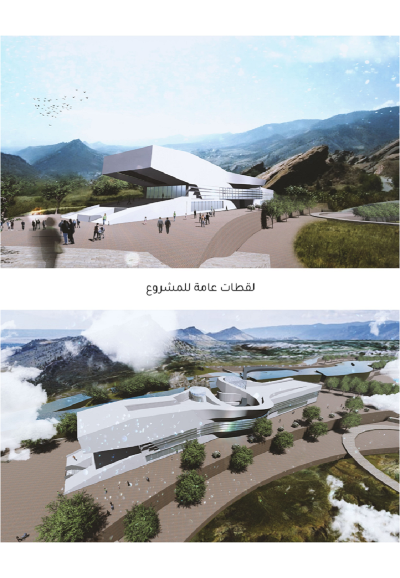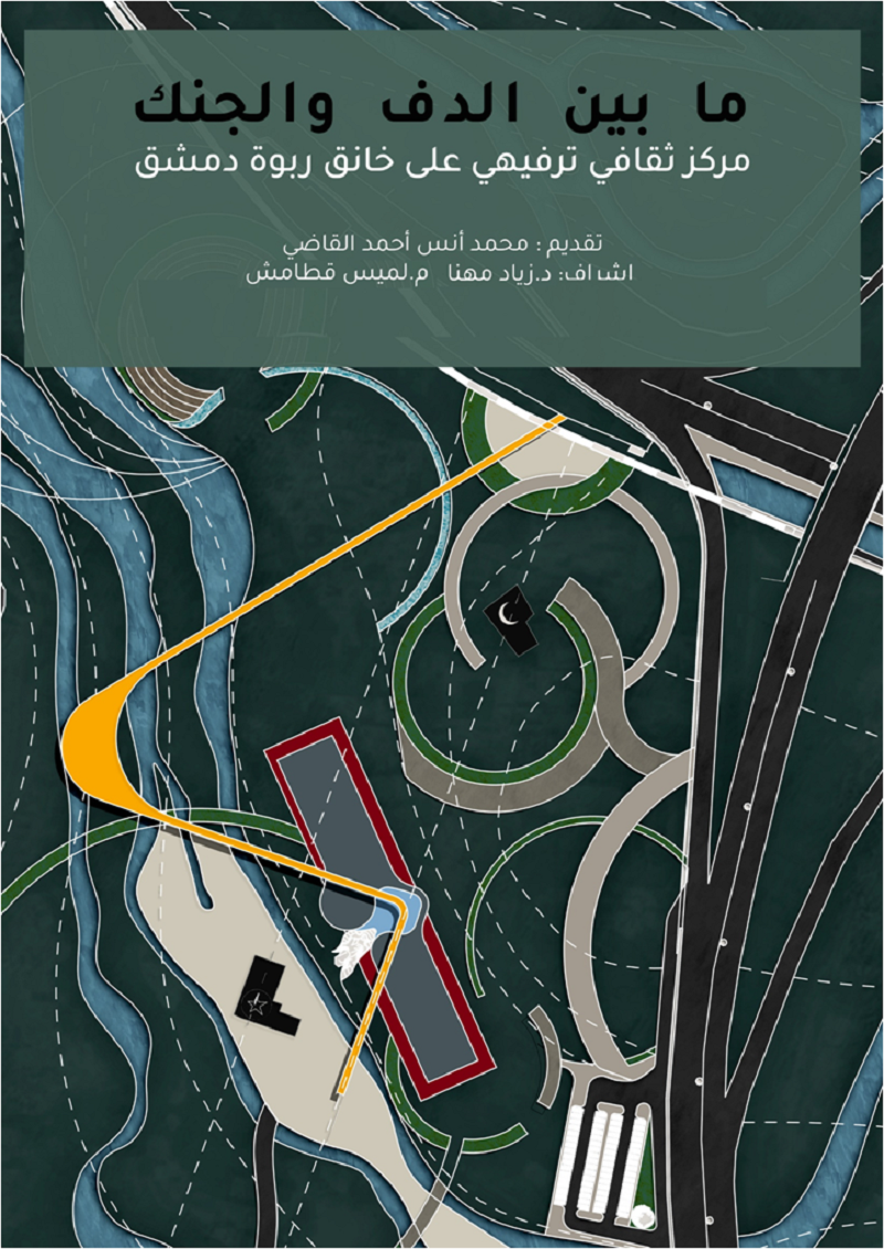 مابين الدف والجنك : تسمية استمدت من موقع المشروع الذي يتوسط جبلين في خانق الربوة عند سفوح الجبال المحيطة بمدينة دمشق حيث الجبل الغربي الذي يحمل اسم الدف لكثرة الدفوف المزروعة بالزعفران قيه أما الجبل الشرقي فيحمل اسم الجنك لأن رأسه يشبه آلة الطنبور التركية. تبرز أهمية المشروع من تفعيل دور محور نهر بردى كمحورثقافي وترفيهي يؤمن الاتصال المباشر مع المدينة وكرؤية لتطوير المشهد العمراني في منطقة خانق الربوة مع الحفاظ على الملامح الأساسية للموقع ومكوناته ومحاولة التماهي مع طبوغرافية الموقع والتأكيد على ملامحها .