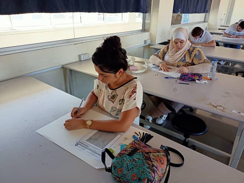 من أجواء امتحان القبول الأول للطلاب الجدد المتقدمين للالتحاق بكلية الهندسة المعماري للفصل الدراسي الأول من العام الدراسي 2021 - 2022، الدي جرى يوم الثلاثاء بتاريخ 07-09-2021