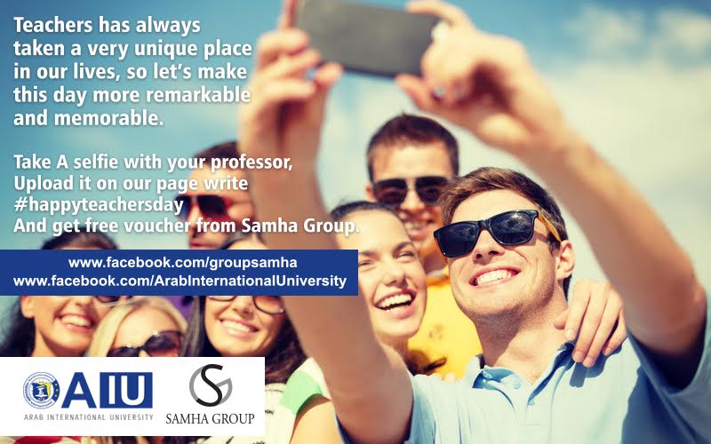 بمناسبة عيد المعلم العربي يمكنكم مشاركتنا بالصور عن طريق صفحة الجامعة على موقع التواصل الاجتماعي