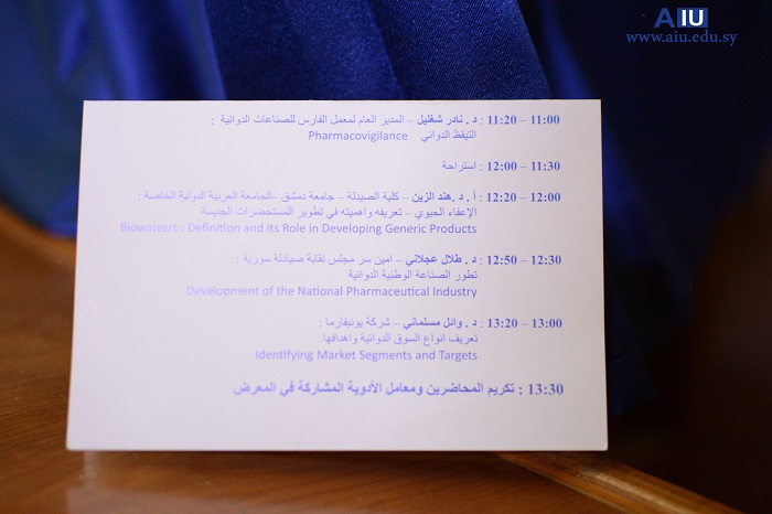 اختتم اليوم على مدرج مدينة الفيحاء الرياضية " اليوم العلمي لكلية الصيدلة " وذلك بحضور كل من رئيس الجامعة العربية الدولية الأستاذ الدكتور محمد ماهر قباقيبي، ونائبيه ، وعميد كلية الصيدلة الأستاذ الدكتور عادل نوفل ، ونائبيه، وبمشاركة عدد من أساتذة الكلية و نقابة الصيادلة بالتعاون و عدد من شركات الأدوية المشاركة المميزة وتم خلال هذه الفعالية تكريم المشاركين والجهات الراعية ،كما تميزت بحضور طلابي مميز وكثيف