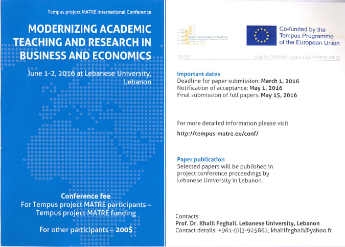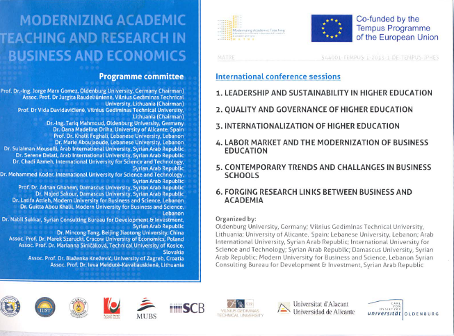 برنامج ورشة تحديث التعليم والبحث العلمي في إدارة الأعمال والاقتصاد في بيروت بمشاركة الجامعة العربية الدولية