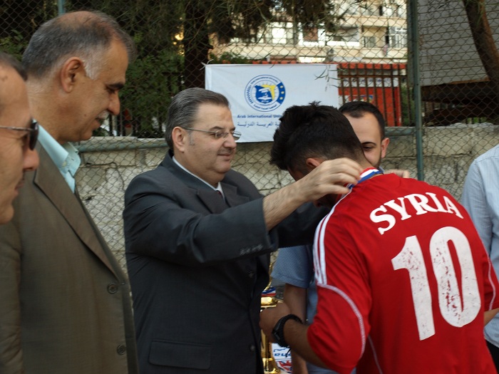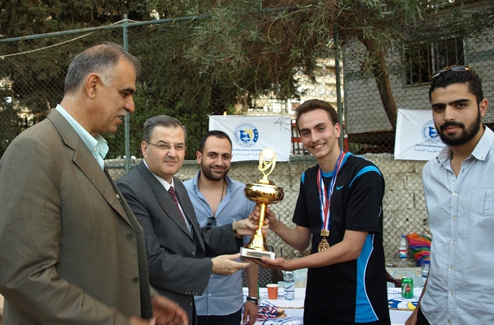 تحت رعاية الاستاذ الدكتور محمد ماهر قباقيبي رئيس الجامعة أقيمت يوم الاثنين في 15/6/2015 في مدينة الجلاء الرياضية (مقر كلية إدارة الأعمال المؤقت) المباراة النهائية لدوري الجامعة بكرة القدم بين فريقي كلية الهندسة المعلوماتية (أ) وكلية الهندسة المعمارية. وحضر المباراة السيد مدير شؤون الطلاب
