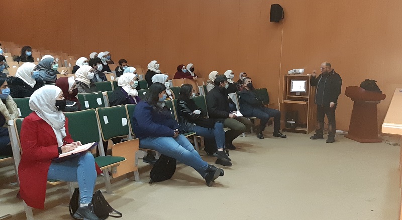 ضمن نشاطات كلية الصيدلة التي تهدف لرفع كفاءات الطلاب وتهيأتهم لدخول سوق العمل، وقد قام الدكتور جهاد يعقوب مدير مديرية شؤون الطلاب بورشة تدريبية في مهارات الإلقاء أمام الجمهور ،وفن تقديم المشاريع وحلقات البحث وتحضير العروض التقديمية ,وقد تميزت هذه الورشة التدريبية بتفاعل كبير من الحضور , بالأسئلة والإستفسارات والمشاركات التي ترفد الموضوع بالحالات العملية التطبيقية.