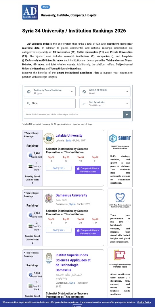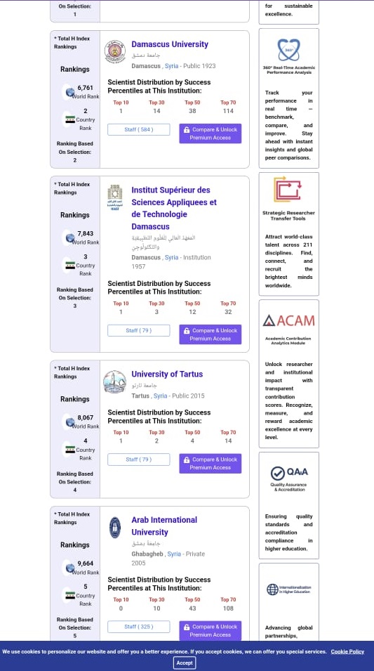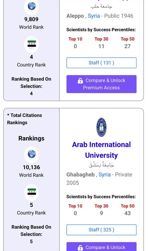 الجامعة العربية الدولية تحتل المرتبة الخامسة بين الجامعات العامة والخاصة والمراكز البحث في الجمهورية العربية السورية