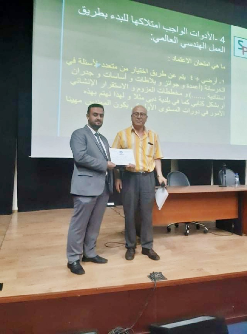 محاضرة بعنوان طريق تأهيل المهندس الخريج السوري للتعامل مع الشركات العالمية وخصوصاً في الخليج في كلية الهندسة المدنية