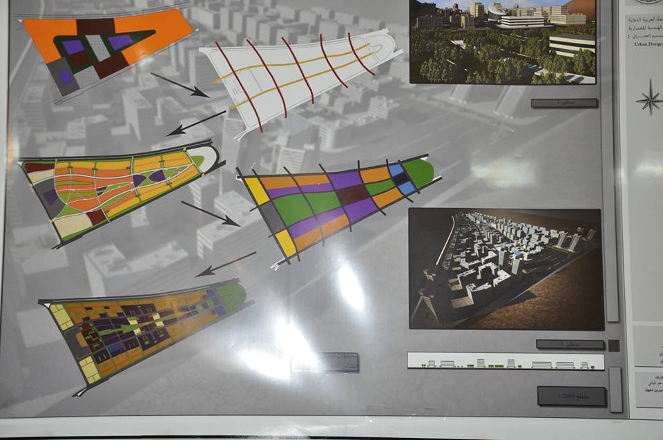 برعاية الأستاذ الدكتور تامر الحجة نائب رئيس الجامعة العربية الدولية للشؤون الادارية والطلاب وعميد كلية الهندسة المعمارية وبحضور عدد من الأساتذة والمدرسين وطلاب الكلية تم إقامة معرض مشاريع الطلاب في مقررات : التصميم العمراني 1 – التصميم العمراني 2 – تاريخ ونظريات تخطيط المدن ، وتم خلال المعرض استعراض نماذج لبعض المشاريع المتميزة للطلاب التي تمحورت حول تنظيم تجمعات عمرانية في مدينة دمشق ووضع مقترحات تلبي نوعية بيئية عالية للتجمعات السكنية والخدمات الملحقة بها بما يخدم توجهات التنمية المستدامة على المدى البعيد.