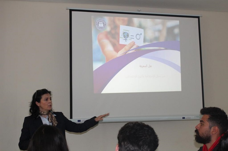 ضمن نشاطات وفعاليات مركز المساواة والاستدامة، في الجامعة العربية الدولية تم تنفيذ ورشة عمل تفاعلية في مركز المساواة والاستدامة، في الجامعة العربية الدولية بتاريخ 20 من شهر آذار 2023. وقد قدمت كل من د. ريم عمر و د. رانيه مطر و م. ماريا عوض عرض تقديمي في سياق نقل المعرفة في مجال الاستدامة والنوع الاجتماعي. وقد حضر هذه الورشات مجموعة من أعضاء الكادر الأكاديمي والإداري للجامعة العربية الدولية ومن طلاب الجامعة العربية الدولية.