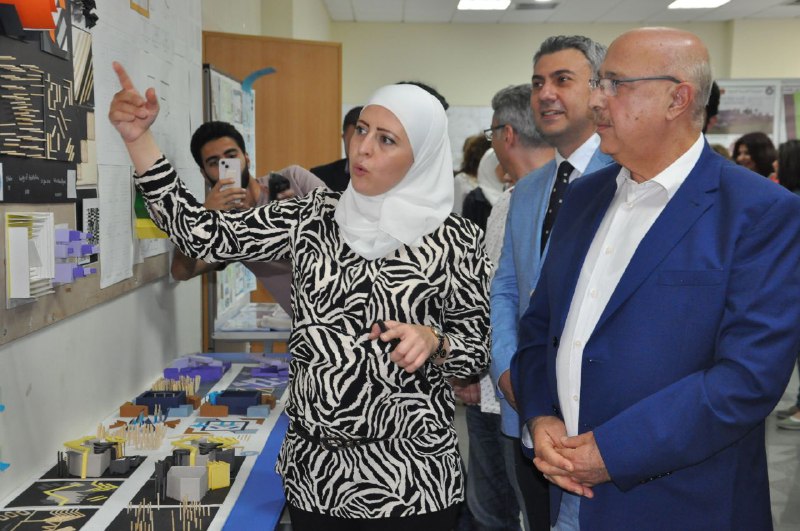 فتتحت كلية الهندسة المعمارية اليوم الثلاثاء 23/5/2023 معرض أعمال الطلاب في كلية الهندسة المعمارية للعام الدراسي 2022-2023 وذلك بحضور الأستاذ الدكتور تامر الحجة رئيس الجامعة العربية الدولية وعميد كلية الهندسة المعمارية ونوابه وعدد من عمداء ونواب وأعضاء الهيئة التعليمية والطلاب في الكليات المختلفة. يضم المعرض الأعمال المتميزة للطلاب في مقرراتهم المختلفة من مشاريع تصميمية ورسومات فنية ونماذج هندسية وفنية ويستمر المعرض لمدة اسبوعين.