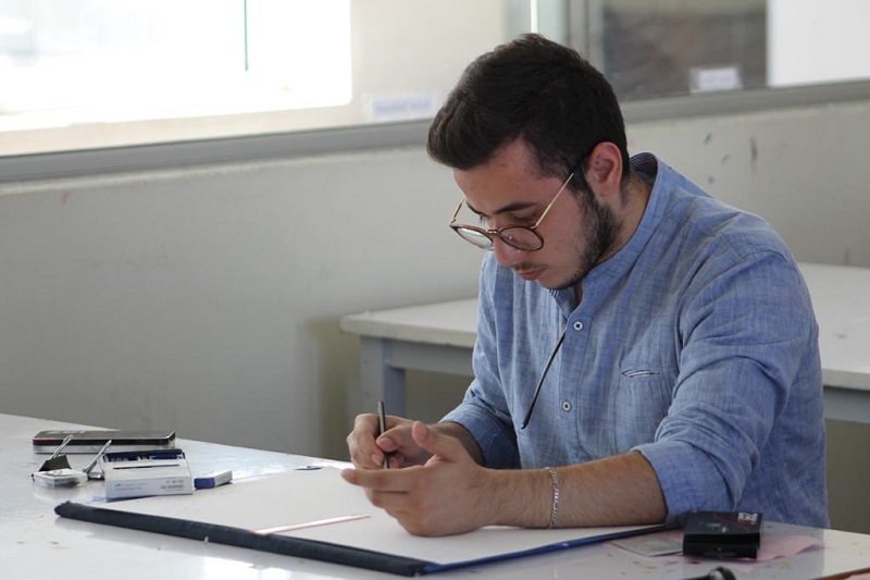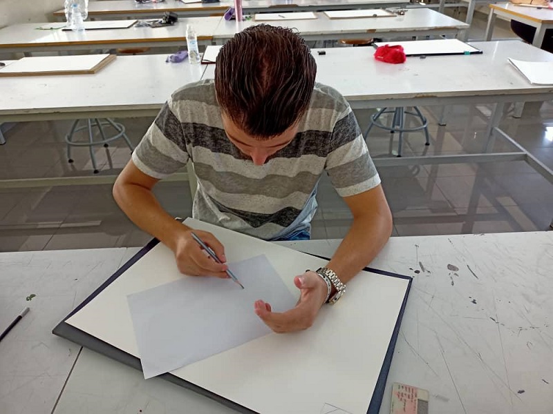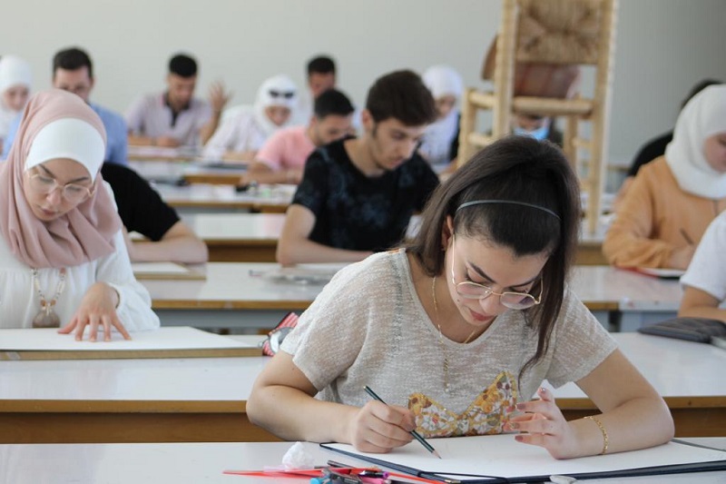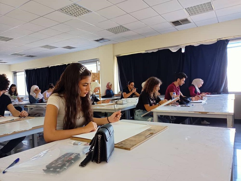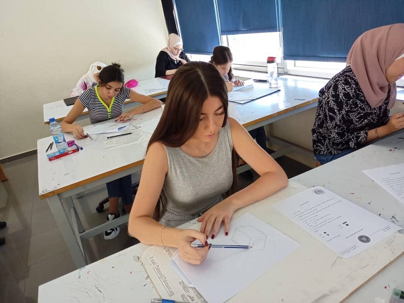 من أجواء امتحان القبول الأول للطلاب الجدد المتقدمين للالتحاق بكلية الفنون للفصل الدراسي الأول من العام الدراسي 2021 - 2022، الذي جرى يوم الأربعاء بتاريخ 08-09-2021 في مقر الجامعة العربية الدولية.