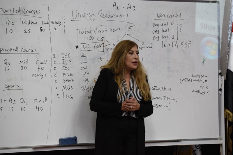 كما قامت الدكتورة رنا عضيمة رئيسة قسم المتطلبات واللغات بشرح تفصيلي عن القسمين ومستلزماتها