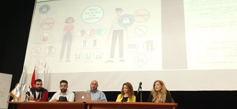 حيث قام الدكتور جهاد يعقوب مدير مديرية شؤون الطلاب، بالترحيب بالطلبة الجدد، وبعرض تقديمي مفصَل عن الجامعة وأقسامها ونظامها الأكاديمي ونظامها الداخلي والنشاطات والأندية الطلابية، والتي تمكن الطالب من معرفة مسيرته الأكاديمية والخيارات المطروحة له والأنشطة الجامعية.