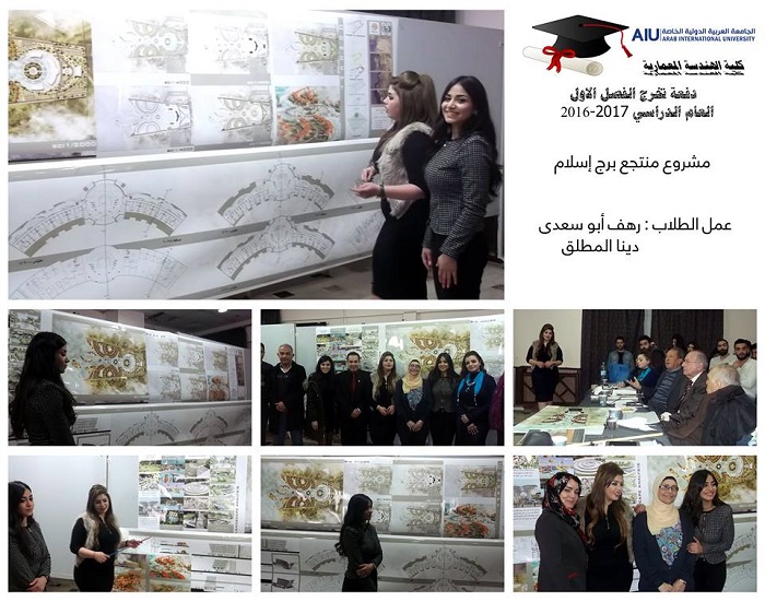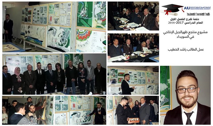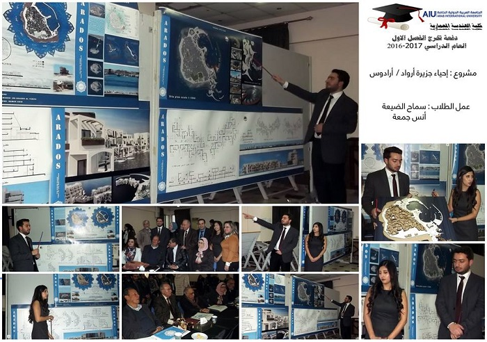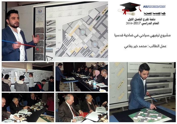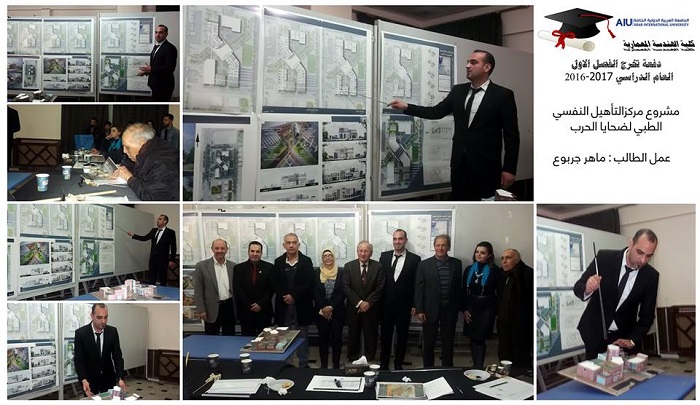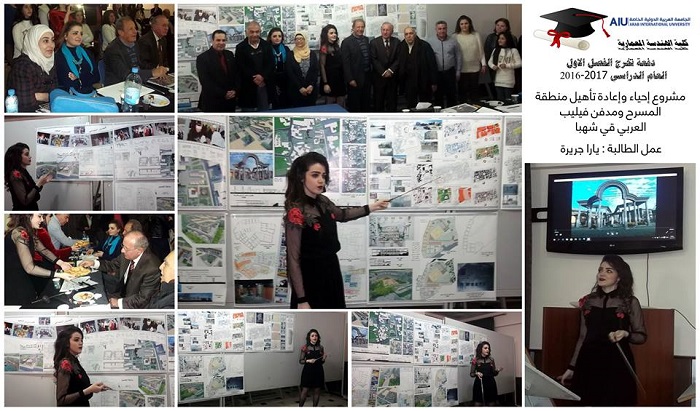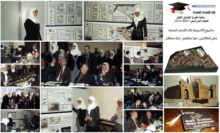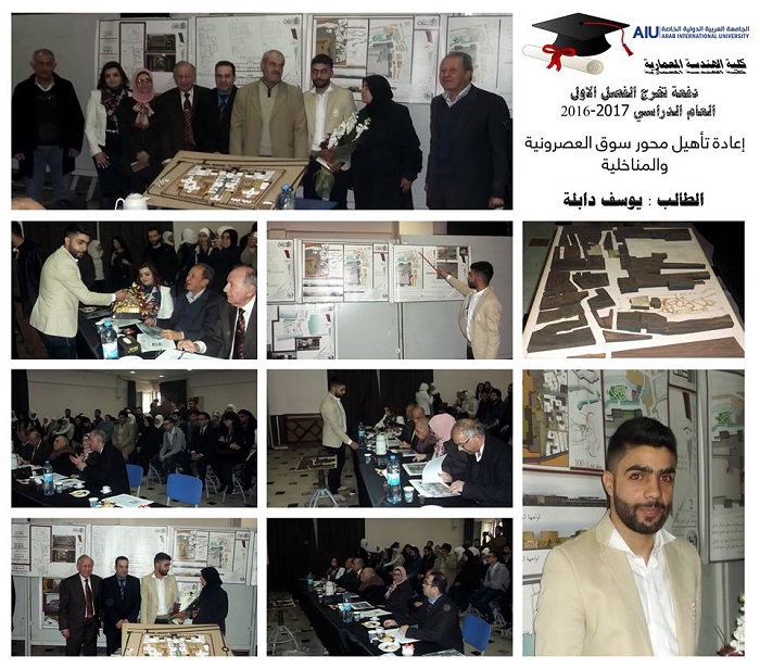 Graduation projects for the semester 20161 were defenced for 23 graduating students. 16 projects were implemented with varied topics such as urban planning and architectural design. The projects were characterized by relevance to the heritage such as the rehabilitation project of Alasronah -Almnakhlah and the rehabilitation project Al-Atrash Square in Sweda governate in addition to the project to revive and rehabilitate the theater district and cemetery of Arab Flip in Shahba.Other projects included ruins-related topics such as the Khaled al-Asaad Academy in Palmyra. Two important projects were defenced related to the development of community services after the crisis, such as the Syrian Reformist in Damascus and Psychological Rehabilitation Center for victims of war. The jury, formed by the faculty members at the college, had discussed these projects for two days in a heavey presence of students and their families alumni who had contributed enthusiastically in the arbitration atmosphere.