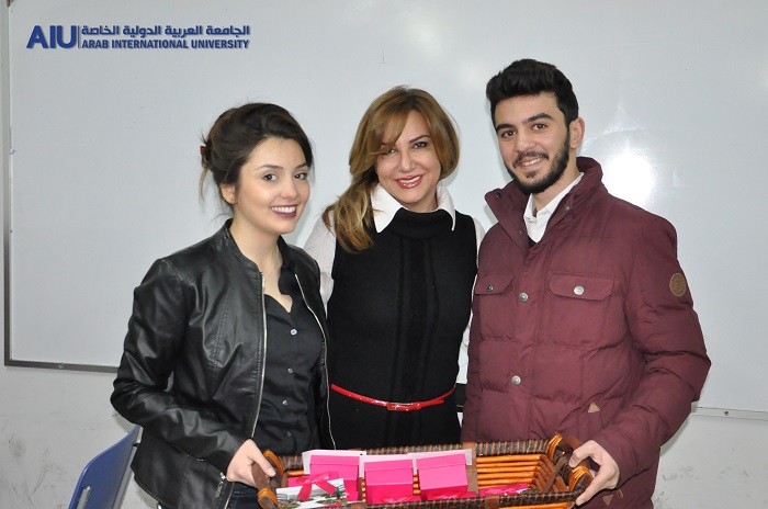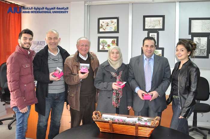 A number of Arab International University students distributed symbolic gifts and commemorative cards to university professors celebrating the Teacher's Day.