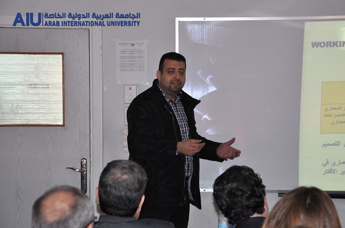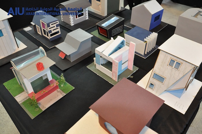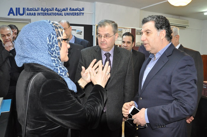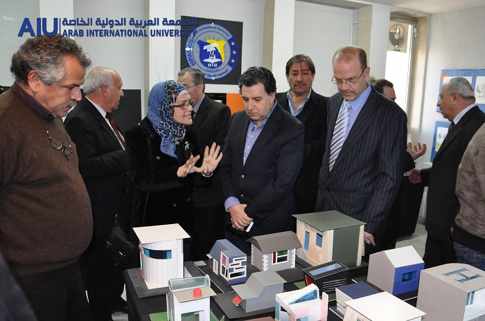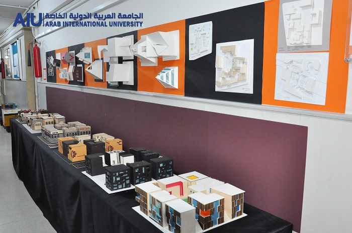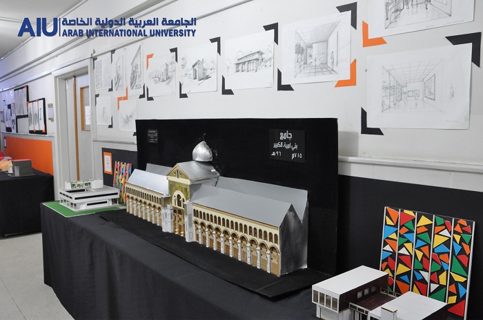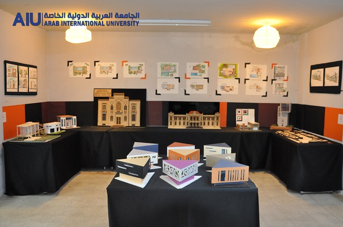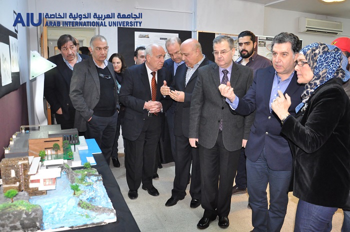 Under the auspices of President of the Arab International University Prof. Dr. Mohammed Maher Kabakibi, students' works exhibition was opened on Saturday 25/2/2017 for architecture students of courses: Architecture Draw 1-2 and Construction Systems 1-2.The exhibition was attended by Dean of the Faculty of Architecture Prof. Dr. Tamer Alhejjeh, Dean of the Faculty of Arts Bassem Dahdouh and a number of faculty members from the faculties. The exhibition, organized by Dr. Hala Tifaha, began with a lecture by engineer Samir Adib and engineer Hisham Siqbani on free drawing and its reflection on the design materials.