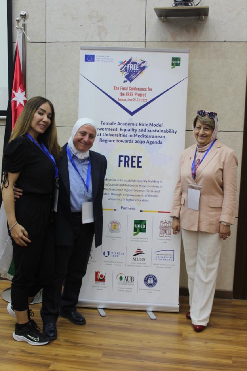 The Arab International University participated in the closing conference of the Female Academic Role Model Empowerment, Equality and Sustainability at Universities in Mediterranean Region: towards 2030 Agenda - FREE, which was hosted by Princess Sumaya University for Technology and the University of Petra in the Hashemite Kingdom of Jordan.