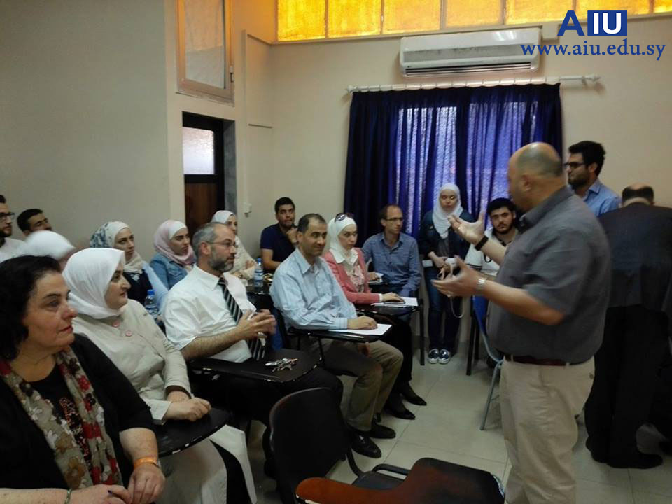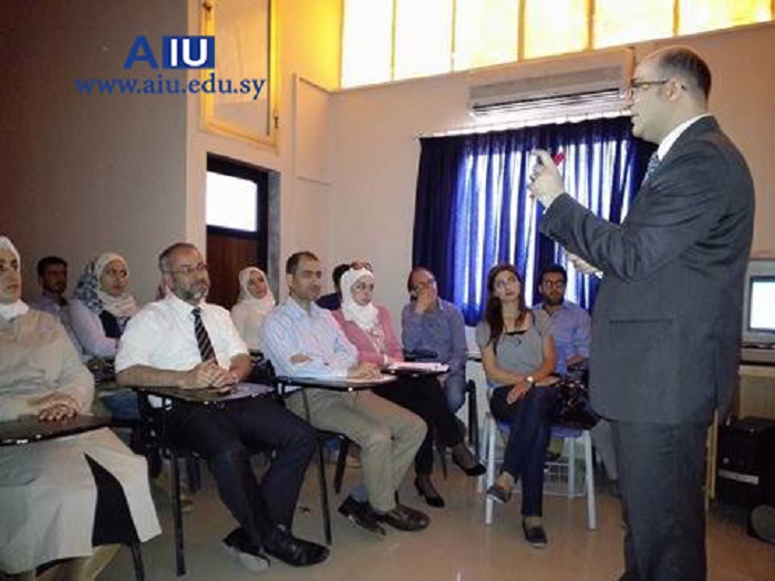 Development and Training Directorate in cooperation with the College of Business Administration at Arab International University held a training workshop entitled Banking Branches Management. The workshop was organized by Mr. Samer Kseibati, manager of Syria Gulf Bank. It was characterized by a distinctive presence and participation of professors and students from various faculties