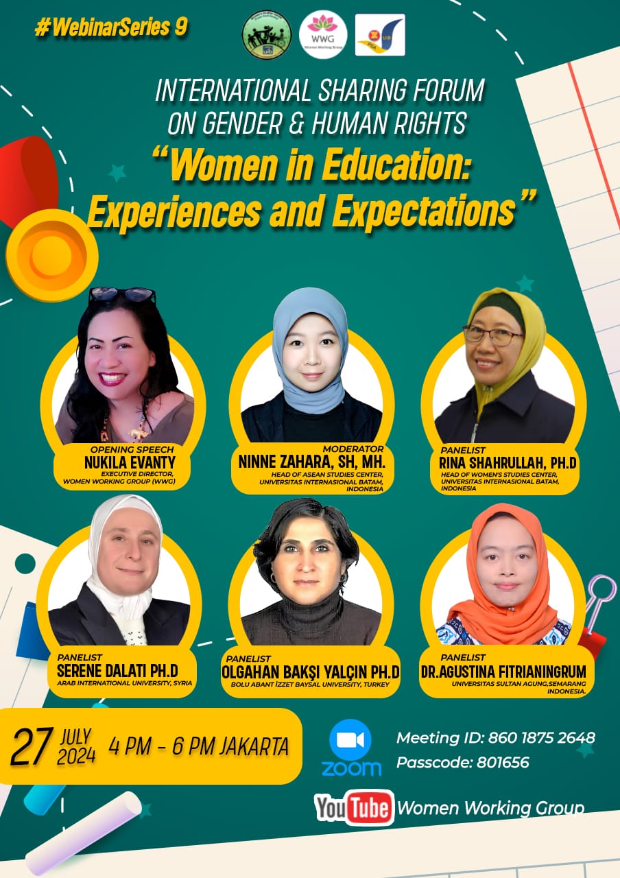 Arab International University (AIU) is participating with the International Forum on Gender Equality within a series of webinars - Session No. 9, sponsored by the Women Working Group (NGO) and University International Batam (UIB) in Indonesia. Dr. Serene Dalati will perform an interactive online lecture entitled: “Presenting a working paper to develop institutional policies and mechanisms for Gender Equality in the Higher Education Sector in Syrian Arab Republic.” This lecture is scheduled within the activities of the aforementioned international forum on July 27, 2024, between 4:00 and 6:00 pm, Jakarta time, Indonesia (GMT +7).
