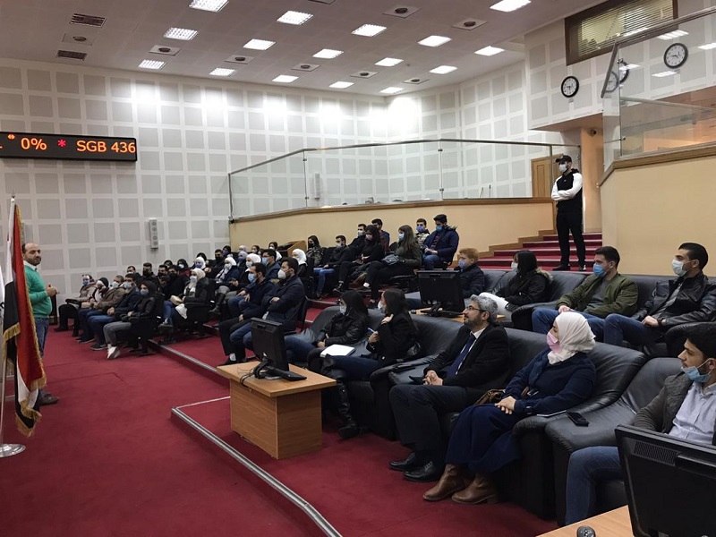The College of Business Administration at the Arab University organized a scientific visit to Damascus Stock Exchange on Thursday 14/1/2021, where students attended a real trading session in the trading floor. The trading mechanism was also clarified and students were informed of the importance of saving through investment in the financial market. The session included a set of tips and instructions for potential investors, where a general and comprehensive idea of the various investment opportunities offered by the market was presented through the various products and services.