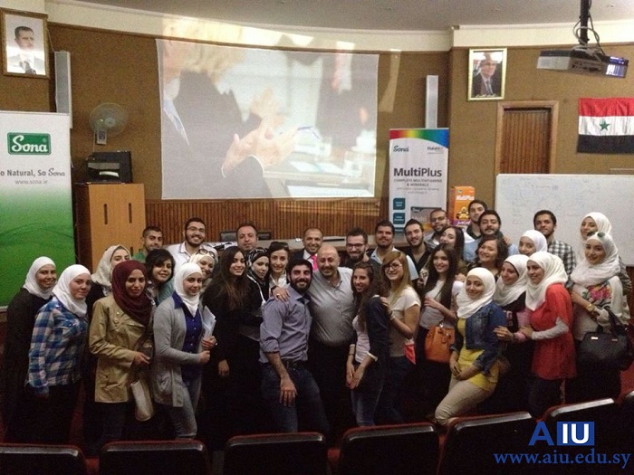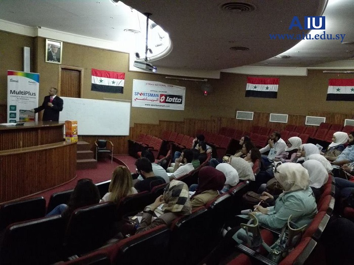 The Development and Training Center in International Arab University (AIU) in cooperation with the National Union of Syrian Students and Sona/ Hlabi Pharma held a training workshop on the skills of presenting projects and effective PowerPoint Presentation skills for the students of Pharmacy College, Saturday 05/07/2016 in the theater of the Faculty of Pharmacy in Fayhaa Sports City.