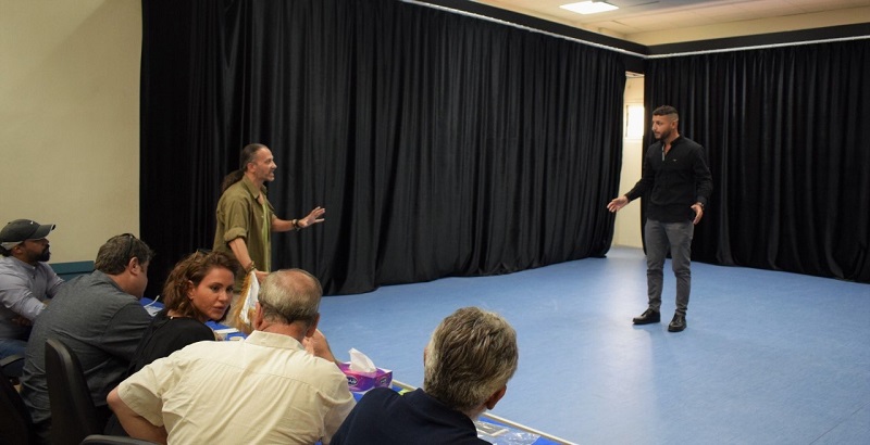 Also, entrance exams for applicants to the Acting Department began on Monday with the presence and participation of members of the committee formed from: Dr. Ajaj Selim, head of the department. The artist, Dima Kandalaft. Artist Fadi Sabih. Sound expert Mohammed Al-Azzawi. The artist Walid Al-Debs. Fitness and movement expert Muhammad Shabatt