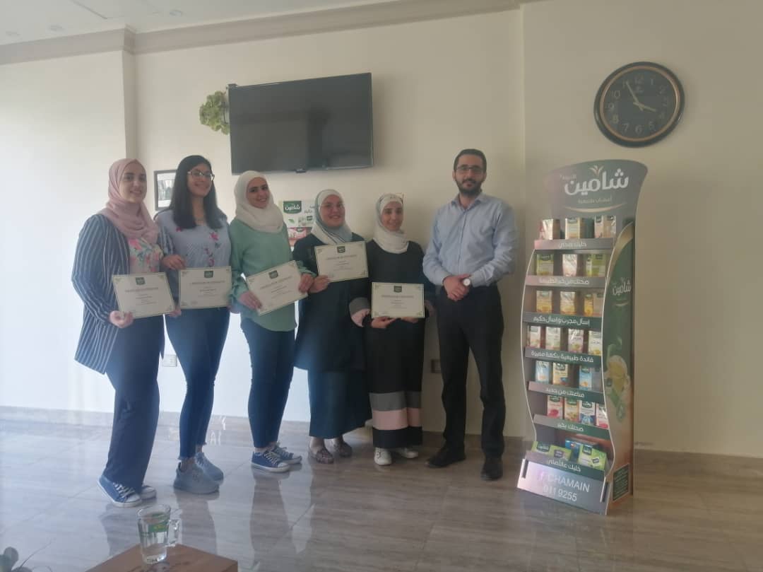 The Arab International University, through the Training and Professional Development Center, cooperated with the Shameen Company to train the first group of graduate students of the Faculty of Pharmacy.