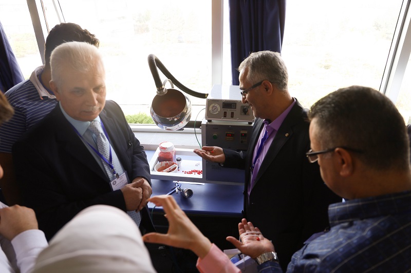 During the workshop, Dr. Mazen Ragab acquainted the audience with the pharmaceutical industry unit at the university and presented some of its works and gave an explanation of the cooperation between the university and the National Company for Pharmaceutical Industries, represented by Dr. Talal Al-Sharif, as well as Dr. Yusar Buseetji, from the National Company, gave an demonstration of the 500 Diaphage tablets, which are the fruit of this cooperation. Dr. Ahmed Al-Tunisi introduced the Technological Development Unit, and gave an explanation of the equipment developed in the Technology Development Unit used in scientific research and the pharmaceutical industry. Lina Dalal and pharmacist Tariq Al-Sagheer gave a demo of this equipment. Dr. Laila Shehadeh gave a presentation of a collaboration experience between the Pharmaceutical Industry Unit and Tamico.