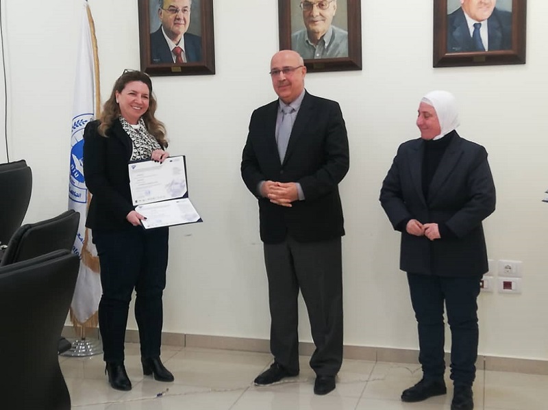 Handing over certificates for project training courses, within the activities of FREE, Empowerment of Female Academics, Equality and Sustainability in the South Mediterranean Region