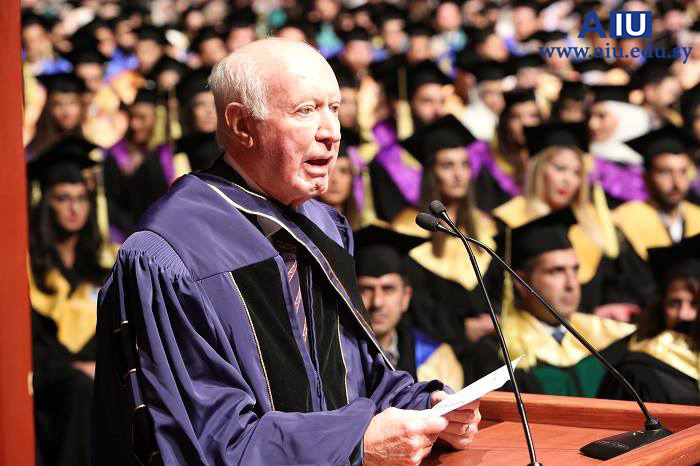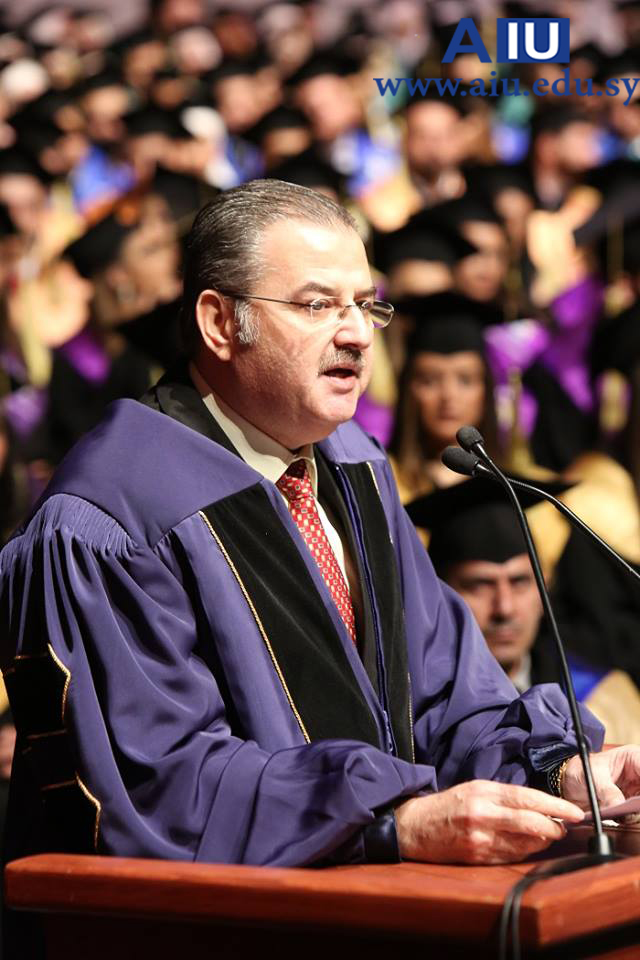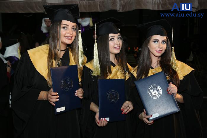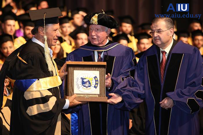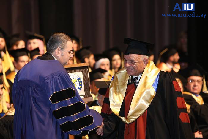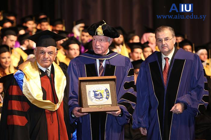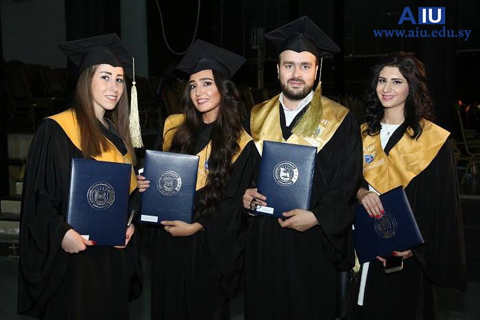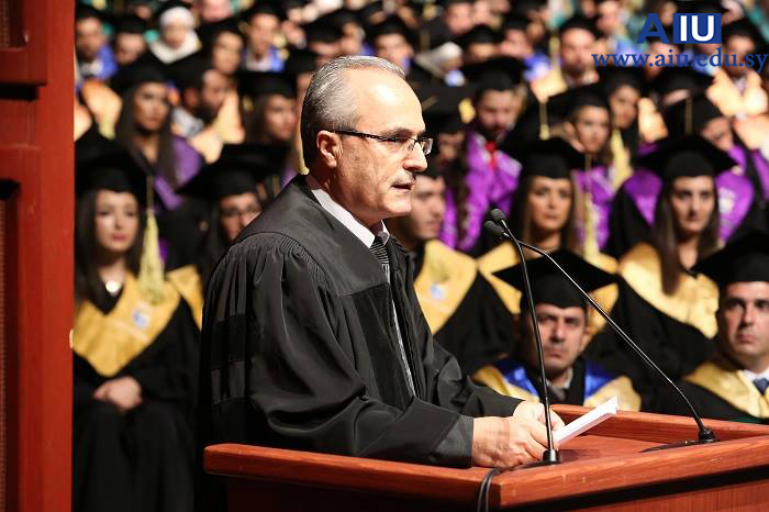 Prof. Dr. Potros Mayaleh, Deputy Minister of Higher Education, representative of the sponsor of the event,Prof. Dr. Mohammed Maher Kabakibi, President of the Arab International University, and deans handed graduation certificates to the graduating students.