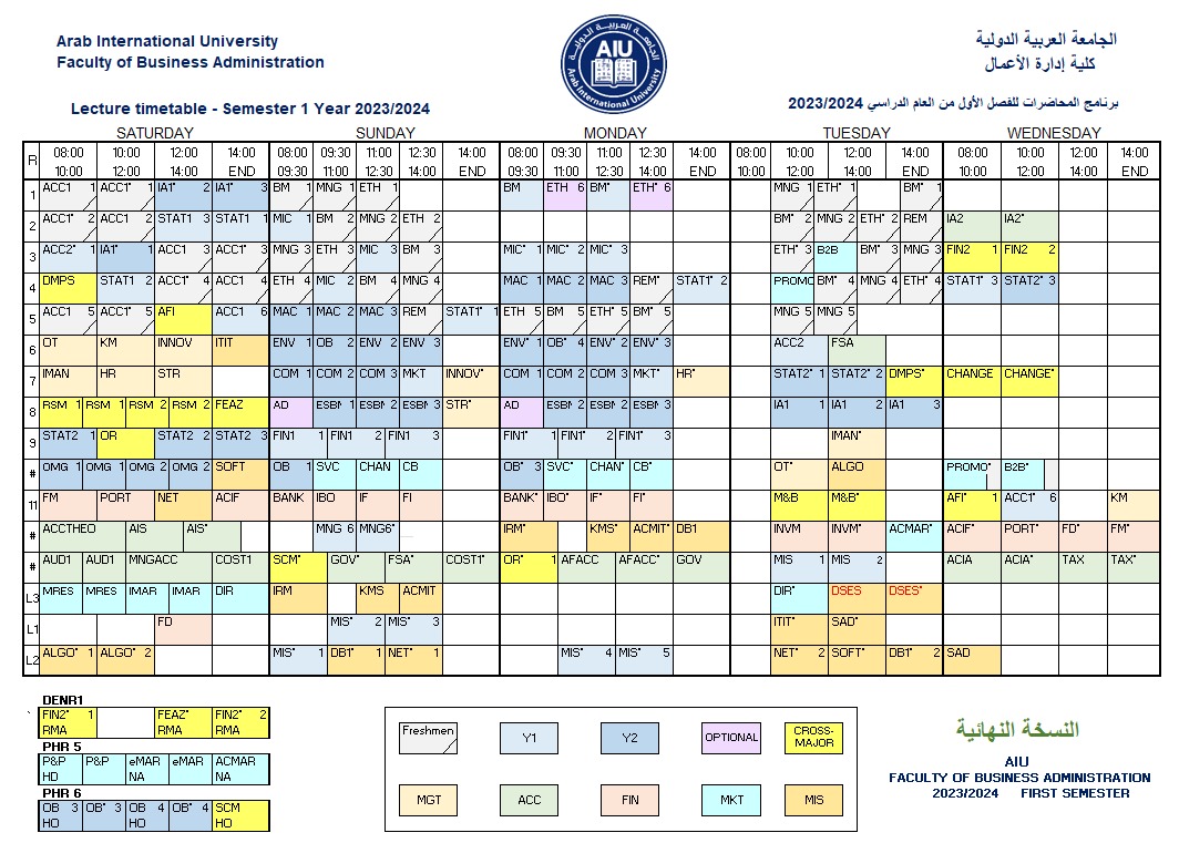 برنامج الفصل الدراسي للفصل الأول 2023-1 من العام الدراسي 2023- 2024 في كلية إدارة الأعمال