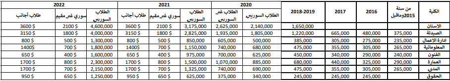 اما الطلاب الذين يسددون رسوم الساعات بالدولار فيتوجب عليهم مراجعة مكتب المالية في الجامعة بغباغب أو مكتب الإدارة الكائن في اوتوستراد المزة للحصول على اشعار تسديد ويكون التسديد حصرا في البنك العربي بكافة فروعه