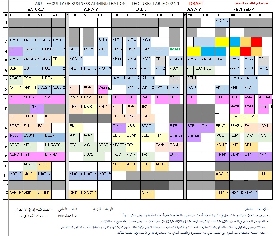 إعلان مسودة برنامج كلية إدارة الأعمال للفصل الأول 2024-1 من العام الدراسي 2024-2025