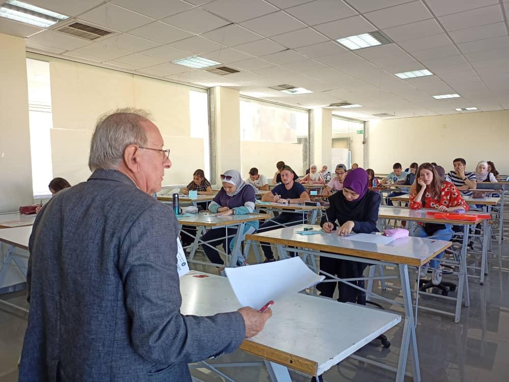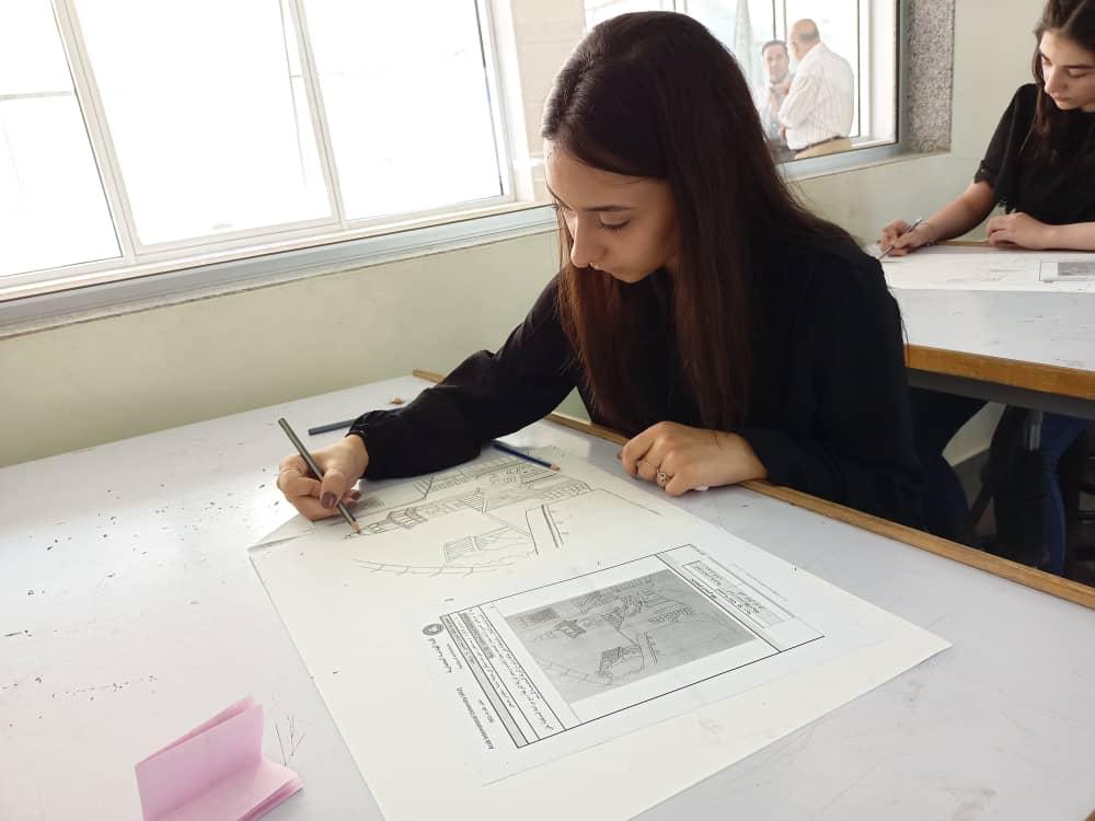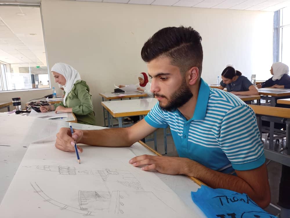 وقد تضمن امتحان كلية الهندسة المعمارية اختبار لمصطلحات مرادفة في اللغة العربية والإنكليزية وثقافة العمارة، وامتحان رسم وتكبير الشكل، ورسم بسيط من الذاكرة، إضافةً لمقابلة شخصية أمام اللجنة المختصة.