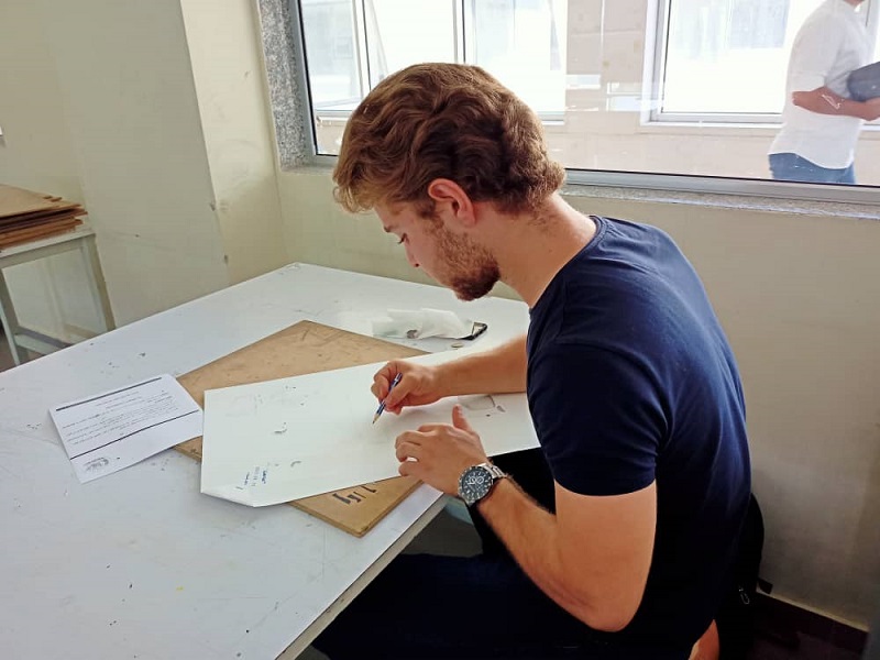 وقد تألف الامتحان من اختبار لمهارات الرسم والتظليل، وامتحان اختباري إبداعي تضمن تصميم ومبادئ أولية للمنظور، ومقابلة شخصية مع الطالب لسبر المواهب.