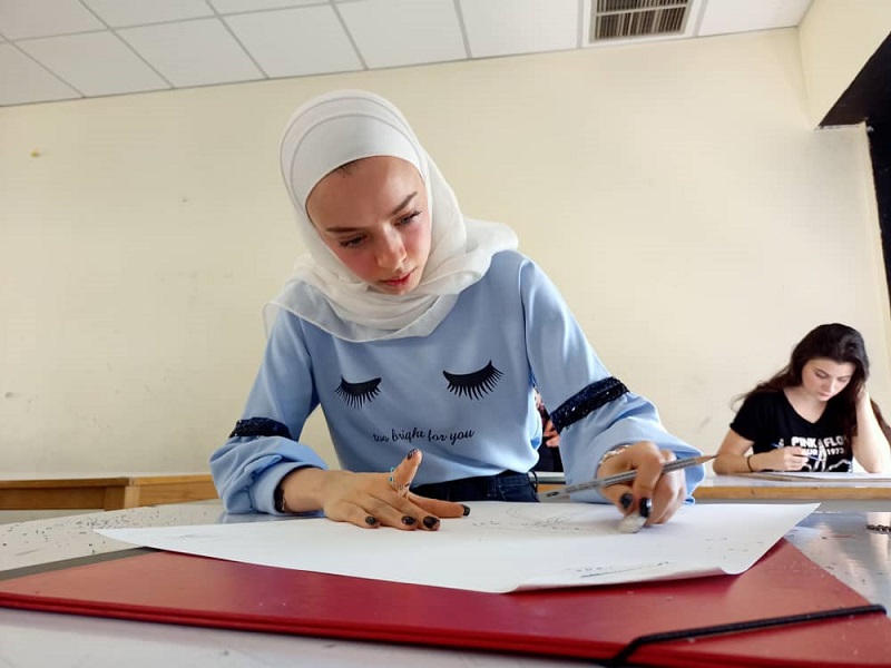 في رحاب كلية الفنون على فترتين امتحانيتين وذلك في مقر الجامعة العربية الدولية.