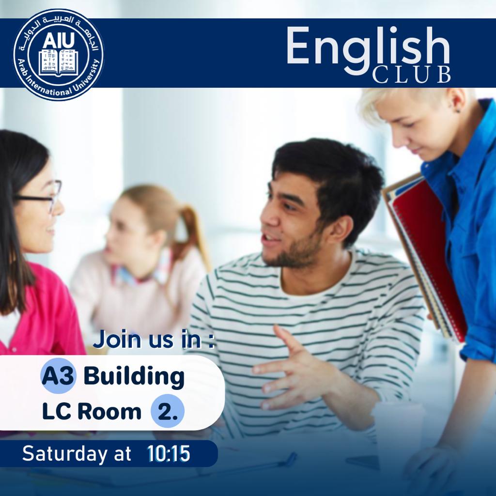 تعلن مديرية شؤون الطلاب بالتعاون مع قسم اللغات الأجنبية عن قيام نادي اللغة الإنجليزية يوم السبت 18/3/2023 الساعة 10:15