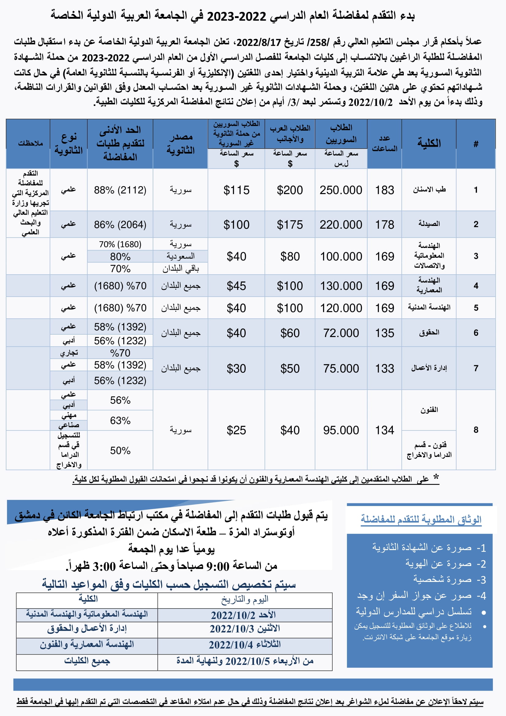 بدء التقدم لمفاضلة العام الدراسي 2022- 2023 في الجامعة العربية الدولية الخاصة