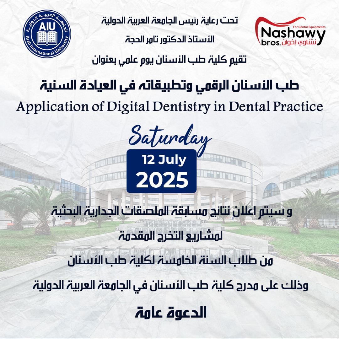 الجامعة العربية الدولية - كلية طب الأسنان تقيم يوما علمياً بعنوان طب الأسنان الرقمي وتطبيقاته في العيادة السنية
