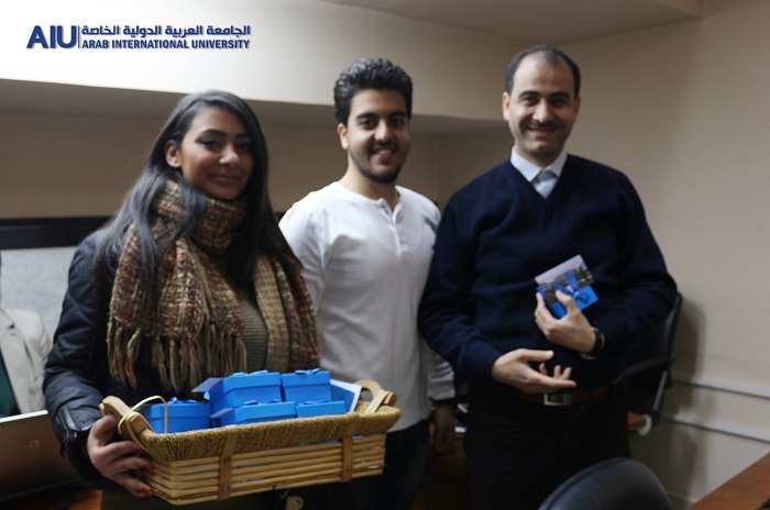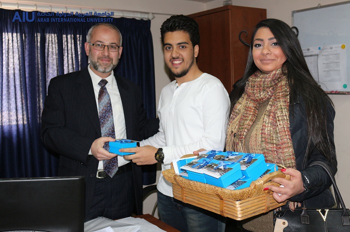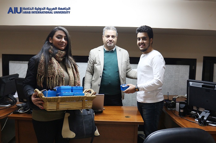 A number of Arab International University students distributed symbolic gifts and commemorative cards to university professors celebrating the Teacher's Day.