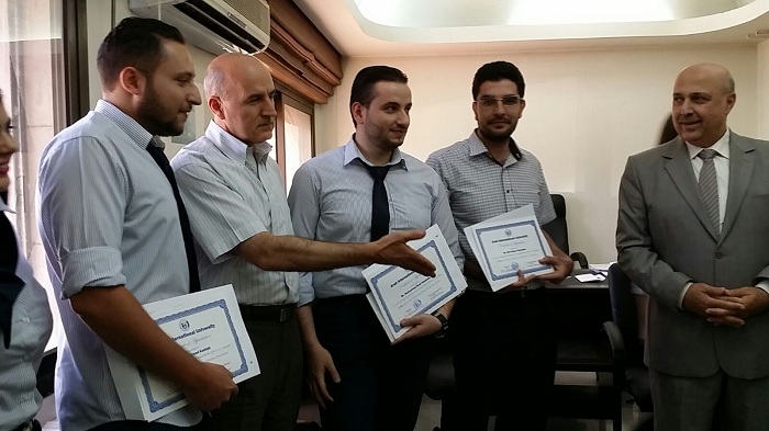 Arab International University honored three of its distinguished employees; engineer Rami Shehadeh, Mr.Rami Halawani and Mr. Mohammed Qaddah, who work in the Directorate of Admission and Registration. This comes as they are being sent for several months to take rehabilitation courses in (Finland - Poland).