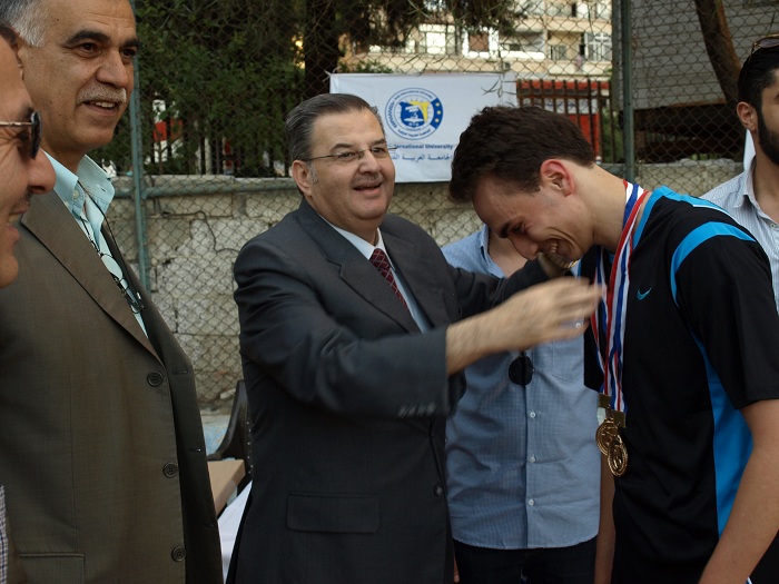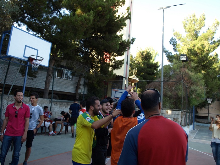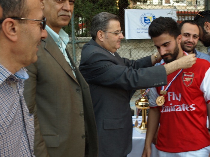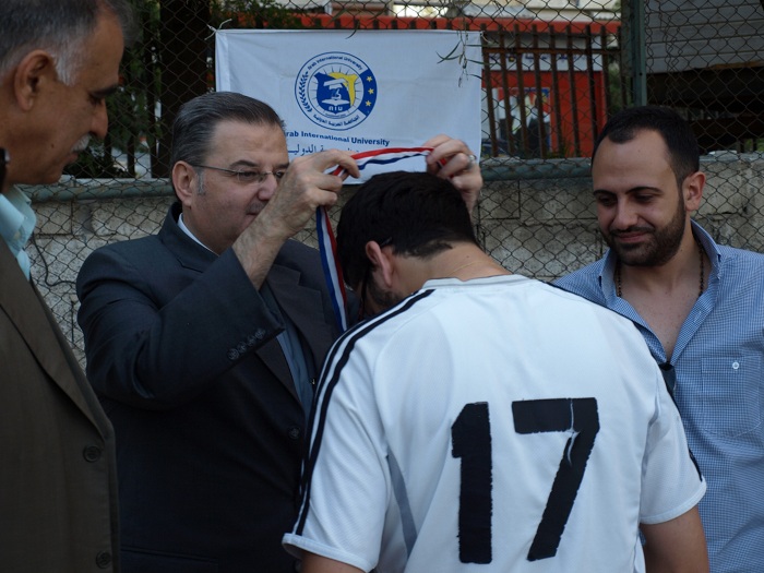 Under the patronage of Prof. Dr. Mohammed Maher Kabbakibi , AIU president, AIU football championship final match was held on Monday 15/06/2015 in Al-Jala'a Sports city (the temporary headquarters of the College of Business Administration ) between the Faculty of Information Technology (Team A) and the Faculty of Architecture. The match was attended by the Director of Student Affairs and Chairman and members of the university branch of the National Union of Syrian Students.