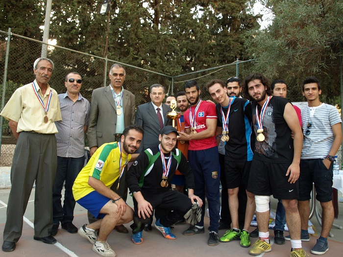 After the match, Mr. President of the University crowned the winner of the championship and honored the top scorer, player Mustafa Darwish; the best player in the championship, Amer Abu Rafi; the best goalkeeper, player Reza al-Hakim; the best defender, player Hassan Hamid al-Humr and the best young player, Tariq Abasiry with medals according to their rank.