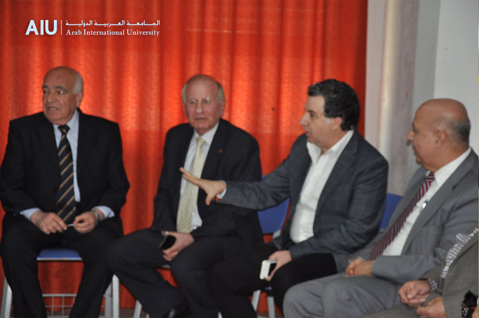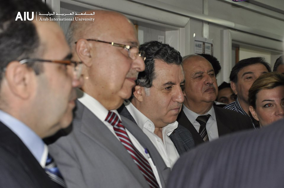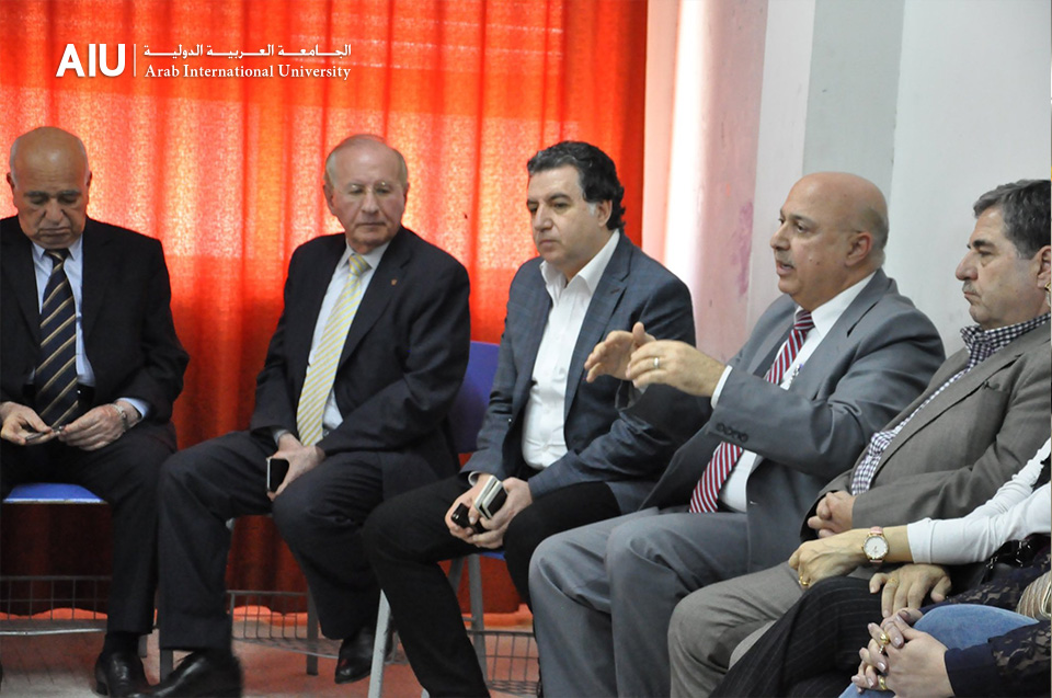 The exhibition included a meeting with the members of the educational body and the administration of the university represented by Dr. Tamer Hajjah, University President, Eng. Mohsen Maqsoud, Chairman of the Board, Dr. Fayez Kiwan and Dr. Marwan Zubaybi, Vice-Presidents of the University and the College Administration represented by Dean Mamoun Al-Wara with his deputies Dr Tunisi and Dr. Abdulrahman with other heads of departments to discuss the educational process and develop it.