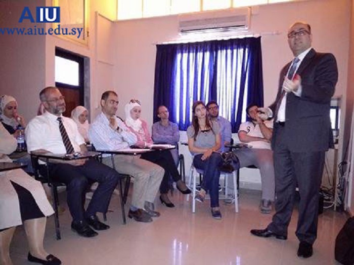 Development and Training Directorate in cooperation with the College of Business Administration at Arab International University held a training workshop entitled Banking Branches Management. The workshop was organized by Mr. Samer Kseibati, manager of Syria Gulf Bank. It was characterized by a distinctive presence and participation of professors and students from various faculties