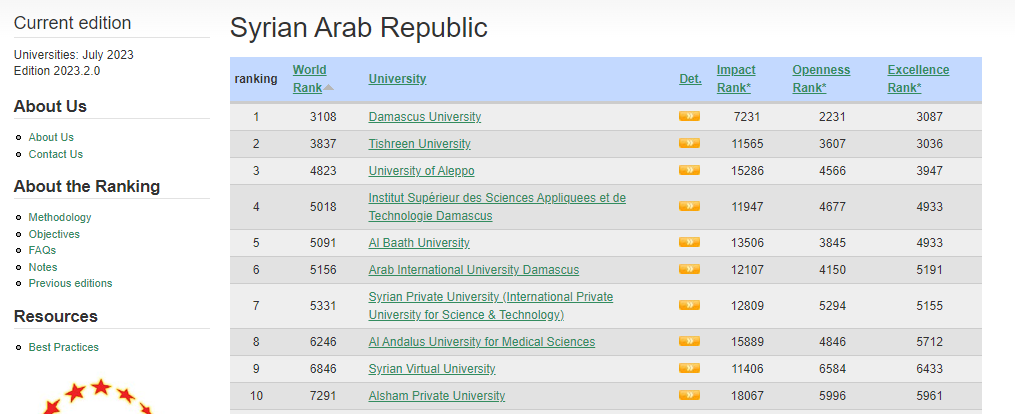 According to the results of webometrics for the month of July 2023, the Arab International University maintained for the twelfth time its first rank among private universities in Syria and occupied the sixth rank among the Syrian public and private universities.