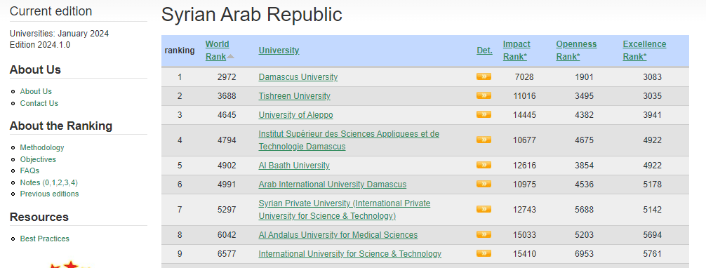 According to the results of webometrics for the month of January 2024 the Arab International University maintained for the thirteen time its first rank among private universities in Syria and also maintained the sixth rank among the Syrian public and private universities.