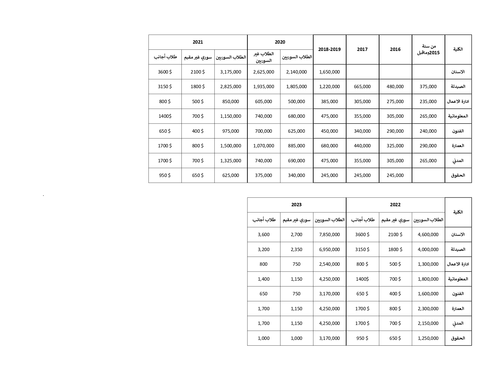 اما الطلاب الذين يسددون رسوم الساعات بالدولار فيجب عليه مراجعة مكتب المالية في الجامعة بغباغب أو مكتب الإدارة الكائن في استراد المزة للحصول على اشعار تسديد ويكون التسديد حصرا في البنك العربي بكافة فروعه