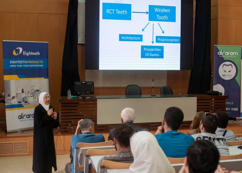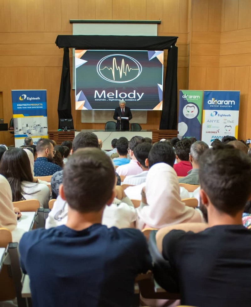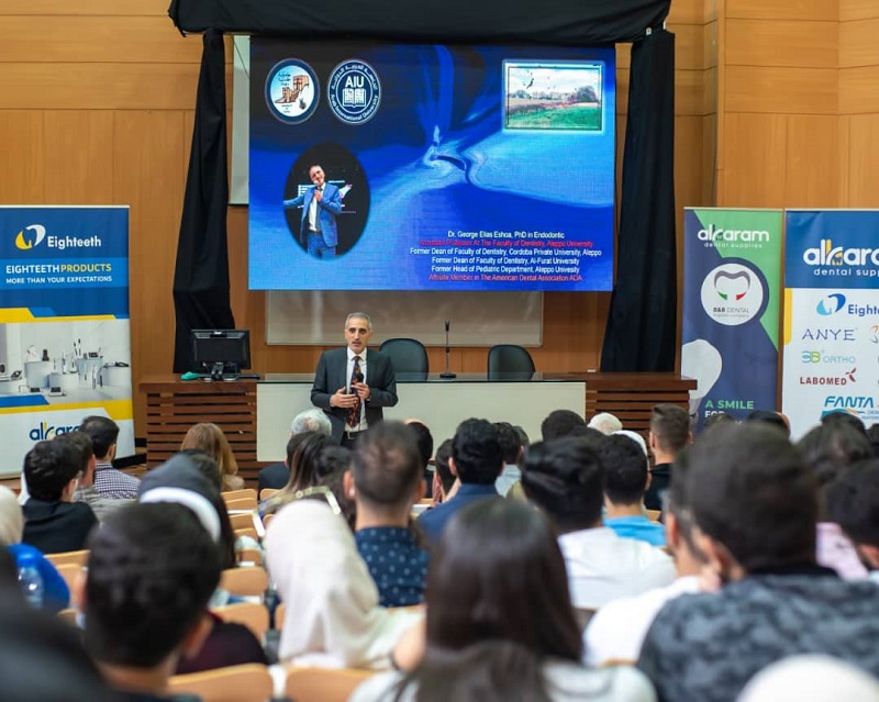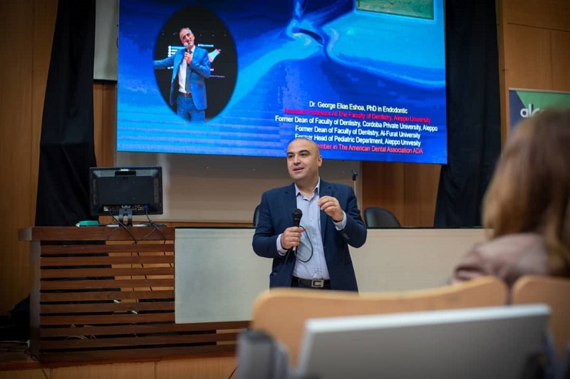 من أجواء اليوم العلمي الأول لكلية طب الأسنان في الجامعة العربية الدولية الذي أقيم في مدرج الكلية يوم الاثنين 22/5/2023 باشراف عميد الكلية الأستاذ الدكتور صفوان جابر ورئيس قسم المداواة الأستاذ الدكتور ثائر أبو عاصي وبمشاركة نخبة من أساتذة طب الأسنان في الجامعات السورية الحكومية والخاصة، تم إلقاء محاضرات في عدة محاور في مداواة الأسنان تلاها مناقشة مفتوحة مع الطلاب أغنت معارفهم العلمية.