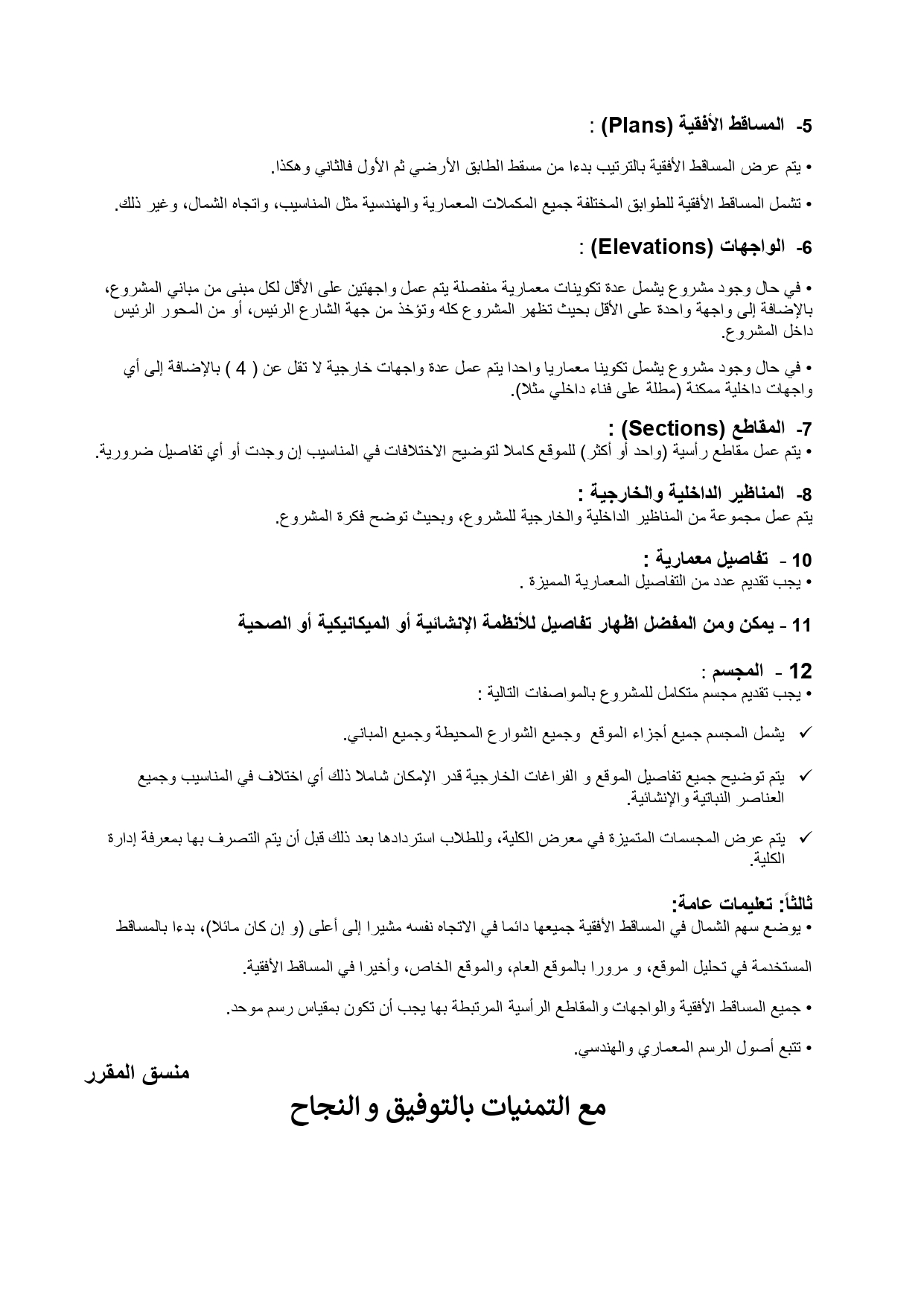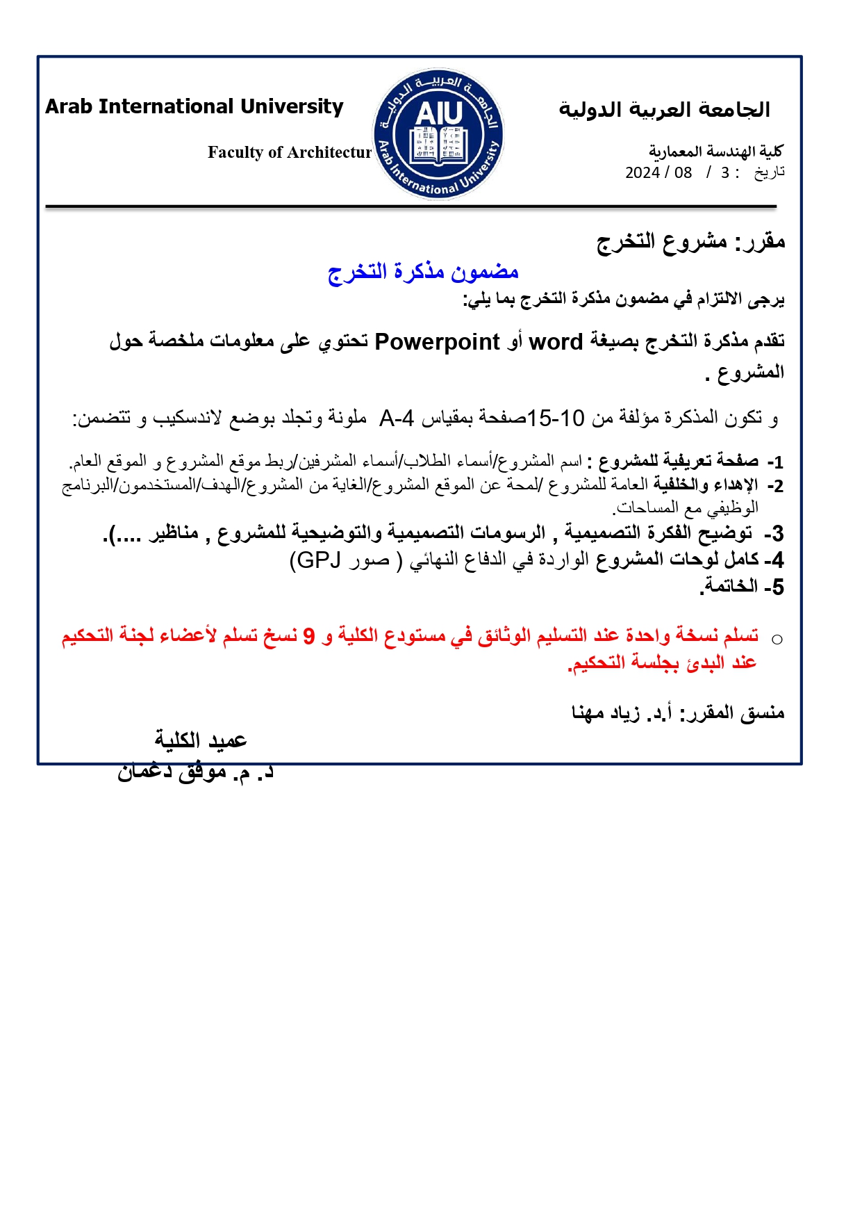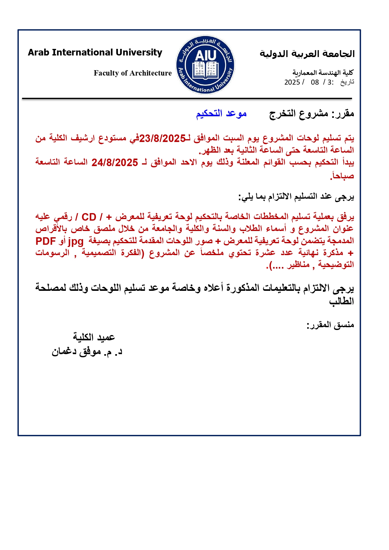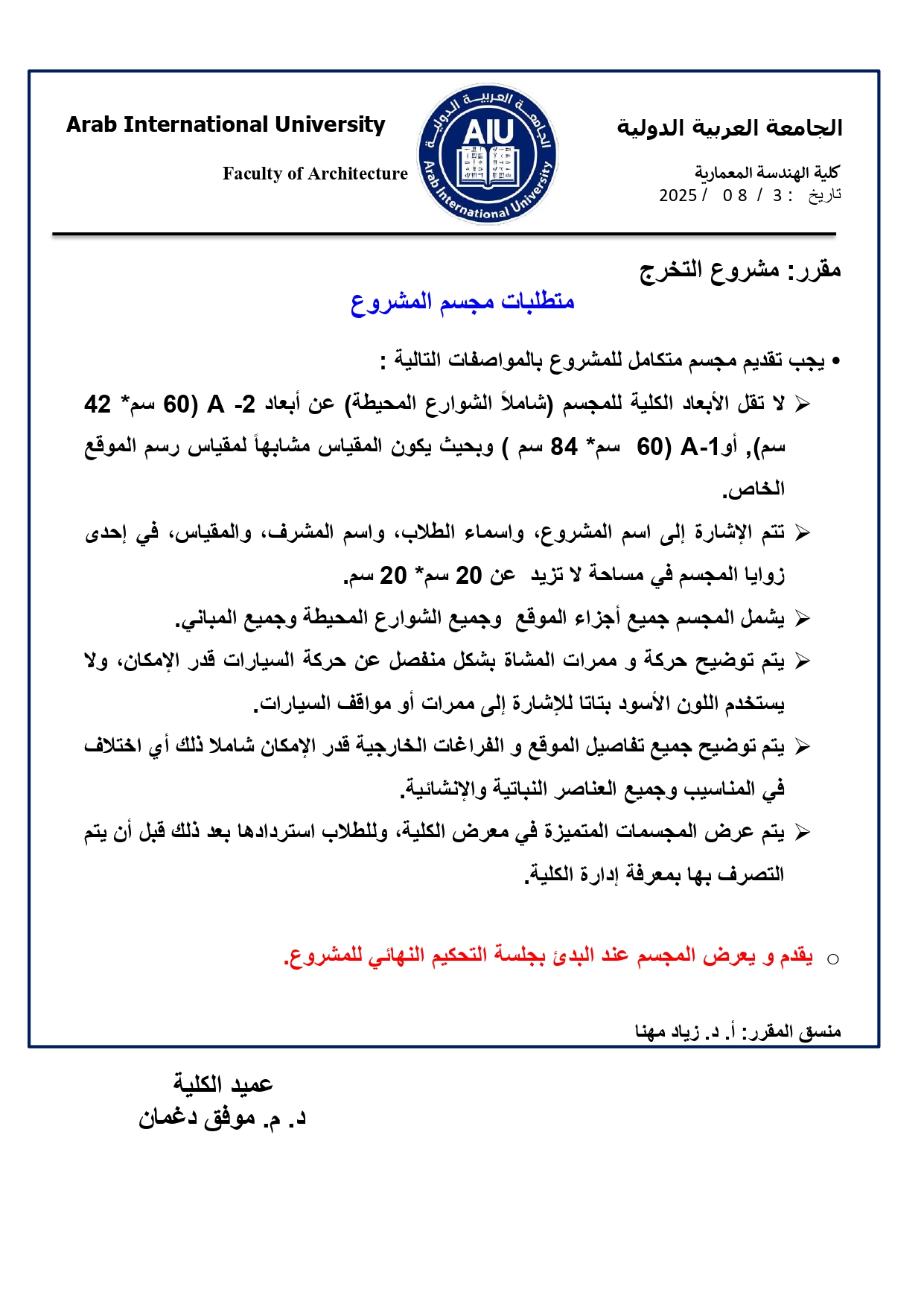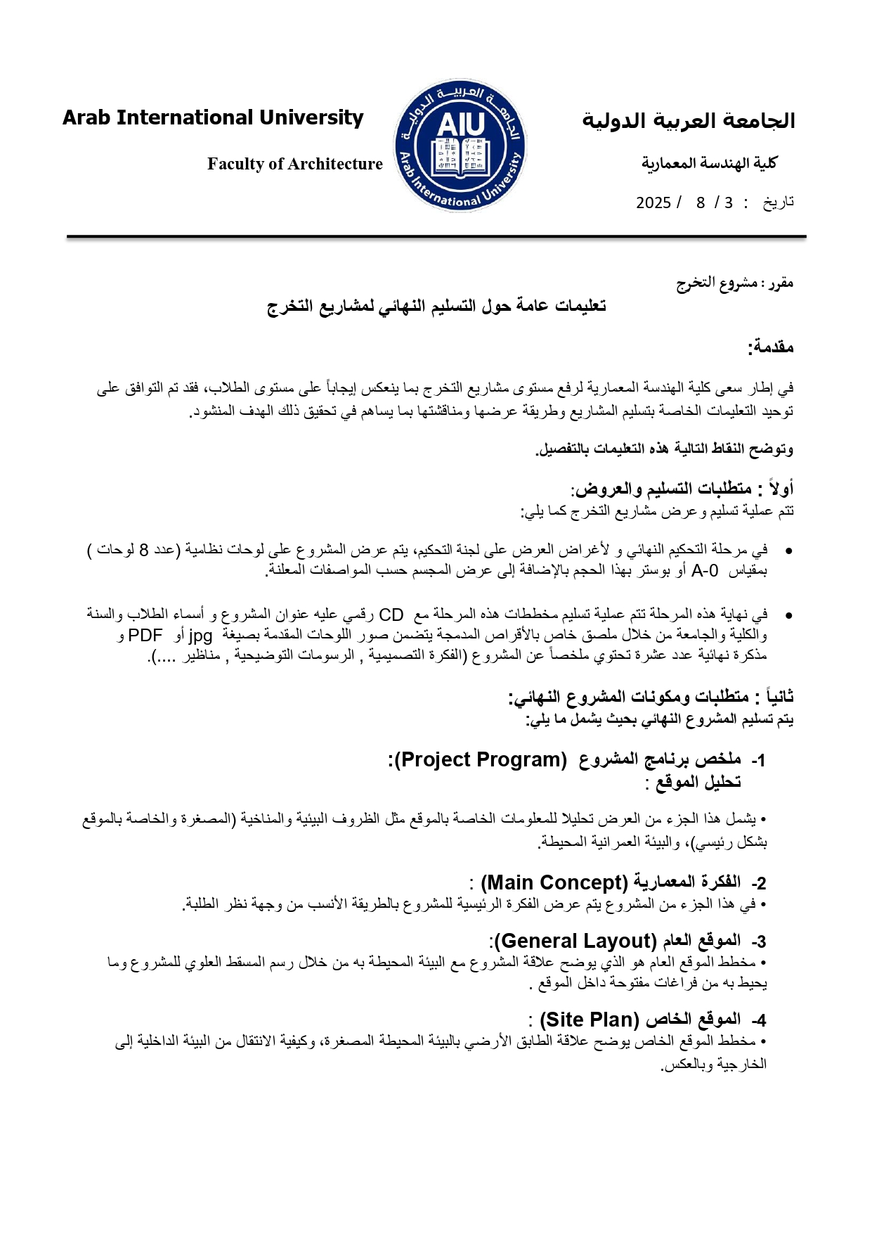إعلان بخصوص مشاريع التخرج - كلية الهندسة المعمارية
