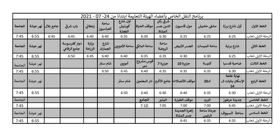 برنامج النقل الخاص بأعضاء الهيئة التعليمة ابتداءً من 24- 07 - 2021