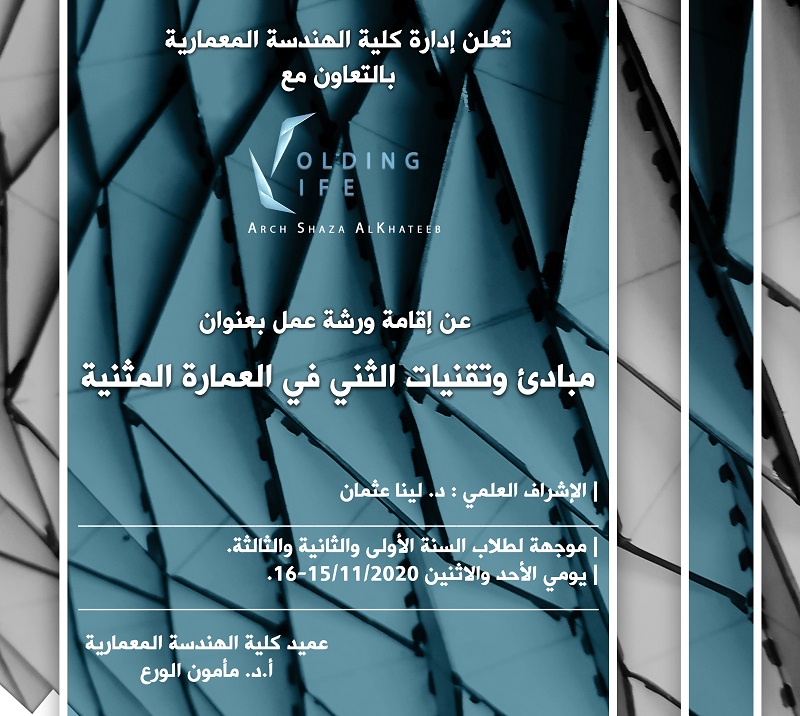 دعوة لطلاب كلية الهندسة المعمارية للمشاركة في ورشة عمل بعنوان تقنيات ومبادئ الثني – العمارة المثنية